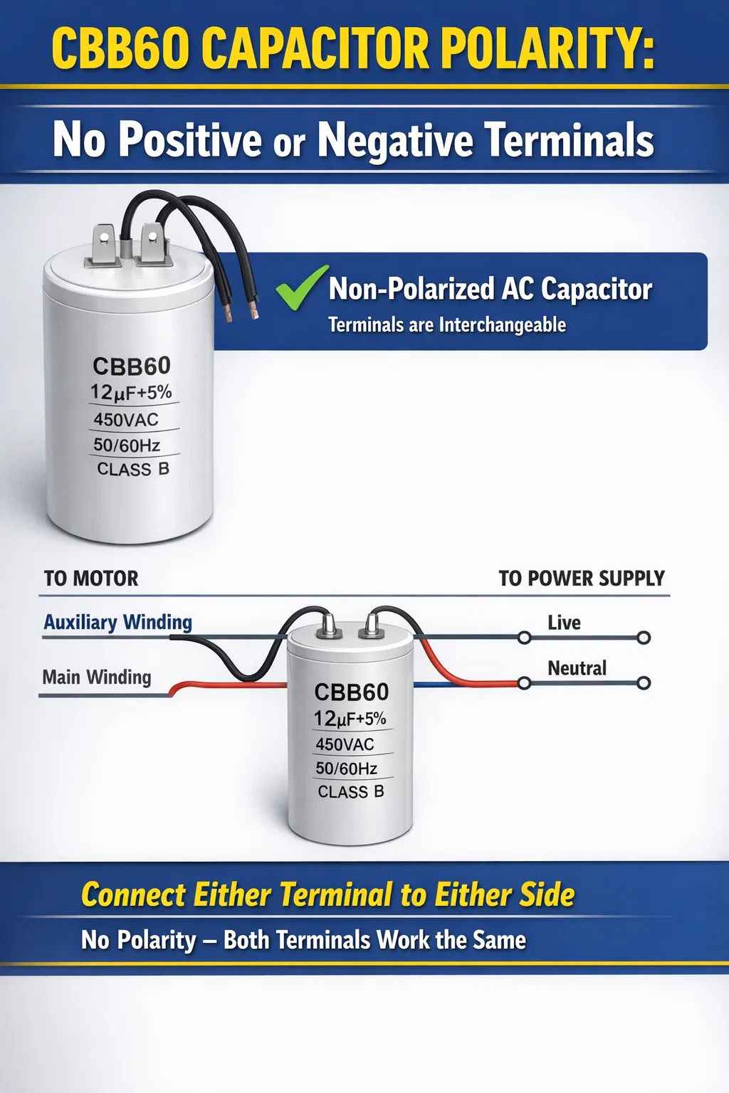 CBB60 커패시터에 양극 또는 음극 단자가 없는 이유