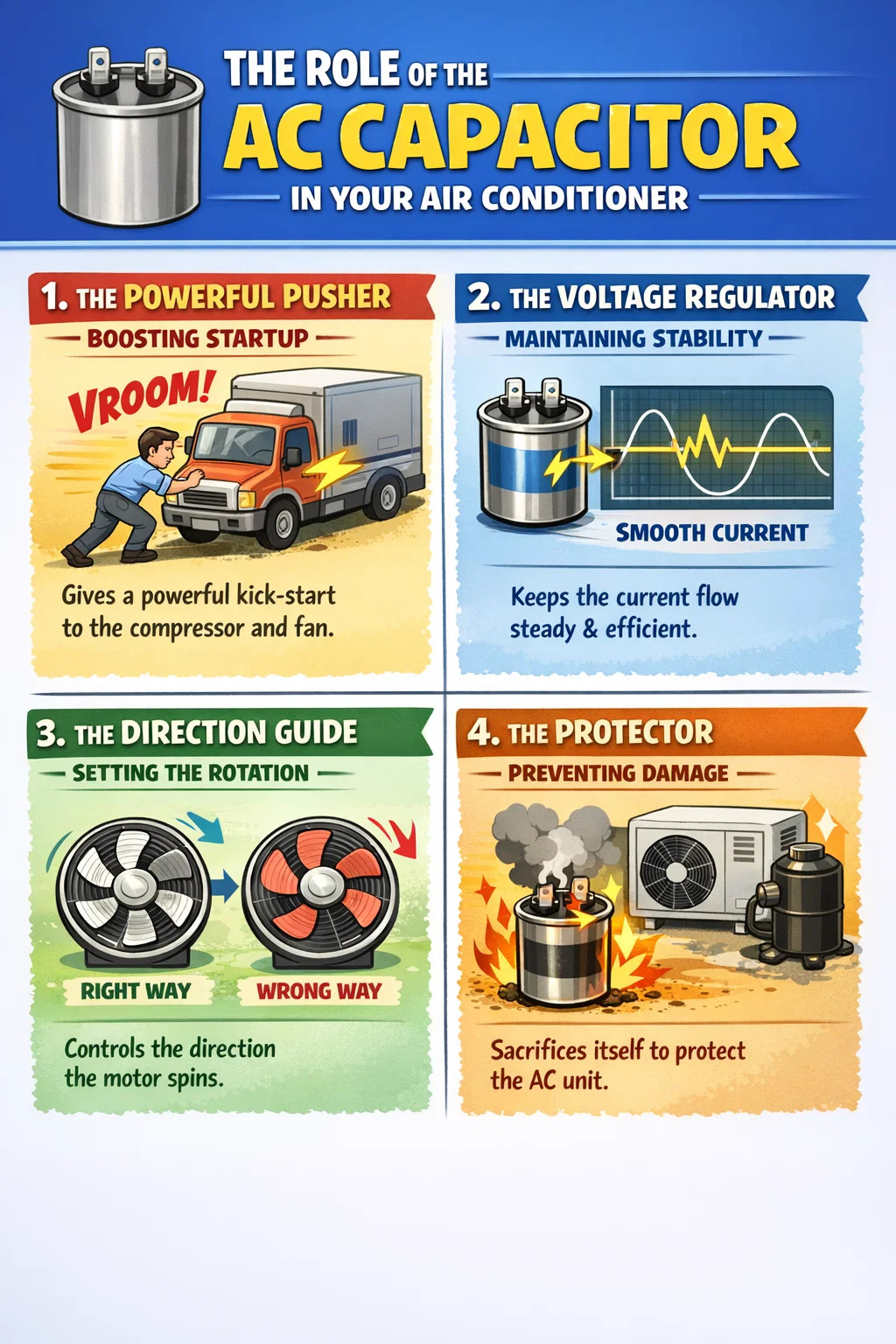 는 교류 콘덴서 (에어컨 커패시터)는 에어컨의 "백업 배터리" 또는 "부스터"와 같습니다. 일반적으로 작은 은색 금속 캔이지만, 이것이 없으면 에어컨이 작동되지 않습니다.
