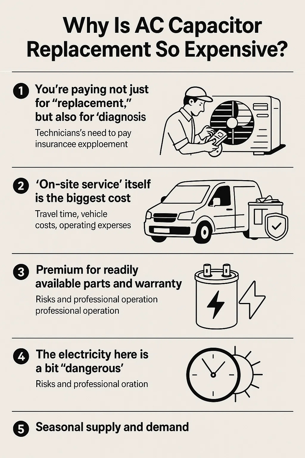 에어컨 커패시터를 교체한 많은 사람들은 다음과 같은 질문을 했을 것입니다. 왜 이 작은 원통형 부품 – 교류 콘덴서 – 인터넷으로 검색하면 너무 저렴한데, 기술자가 교체하러 오면 청구서가 몇 배나 더 나오나요?
